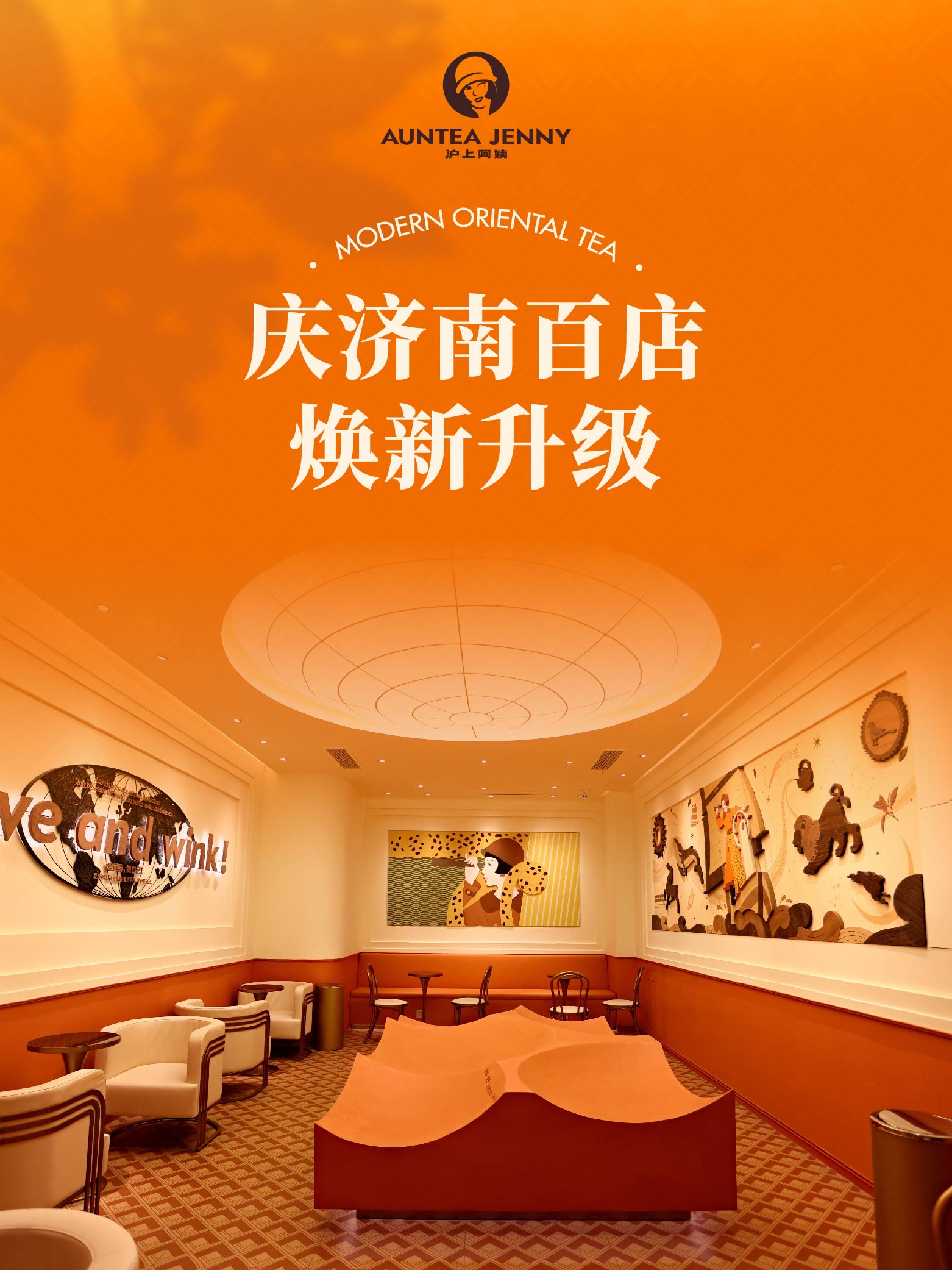 與此同時,滬上阿姨提出全新(xīn)品牌理(lǐ)念:“Love and Wink”。官方對其闡釋是:“Love”代表着獨立、探索、融合與新(xīn)生,是品牌對于自身發展路徑的堅持與追求;“Wink”則代表着品牌包容開放、獨立自信的輕松态度,是品牌與消費者之間互動與溝通的方式。5.0的門店(diàn)形象上,采用(yòng)幾何線(xiàn)條配合美拉德(dé)肌理(lǐ)感的空間配色,營造出一種海派都市新(xīn)摩登的空間氛圍。品牌形象店(diàn)以愛馬仕橙為(wèi)主色調,少女和豹子的元素顯得年輕、時尚、野性,吸引不少年輕人來店(diàn)内打卡。