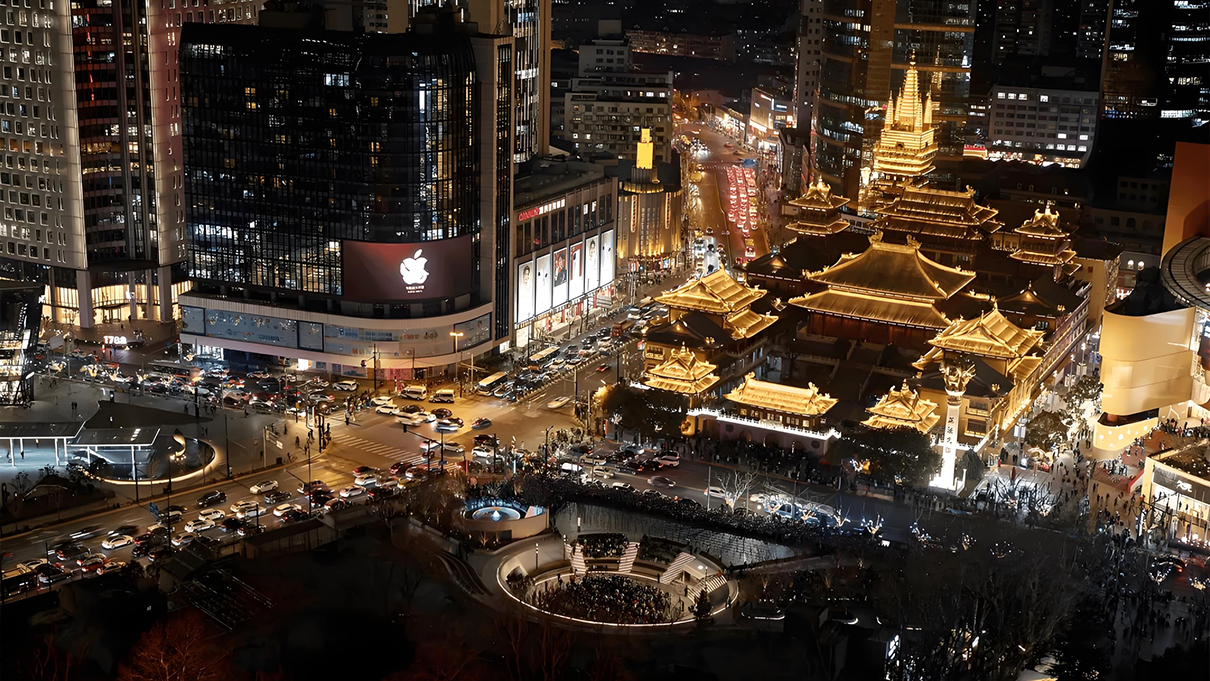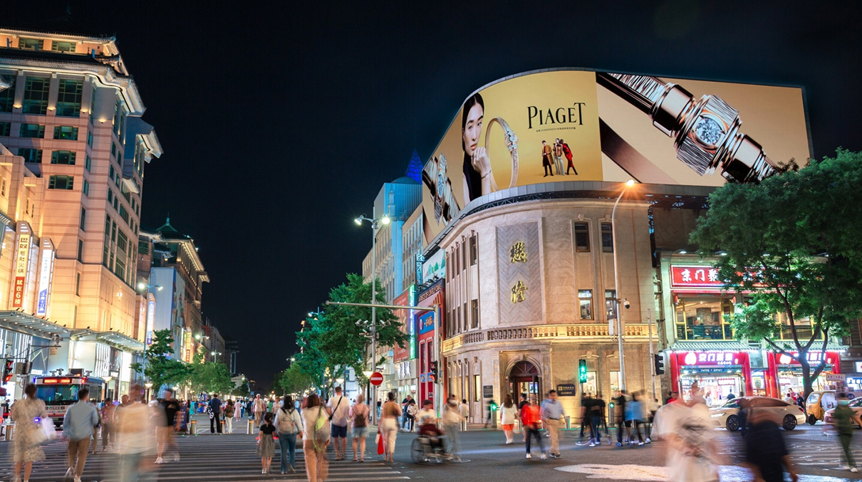 北京市王府井步行街(jiē)與東安(ān)門大街(jiē)交彙處(懋隆珠寶城樓頂)