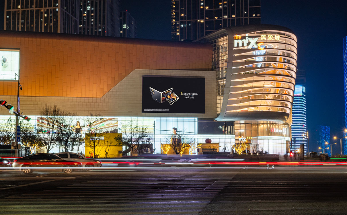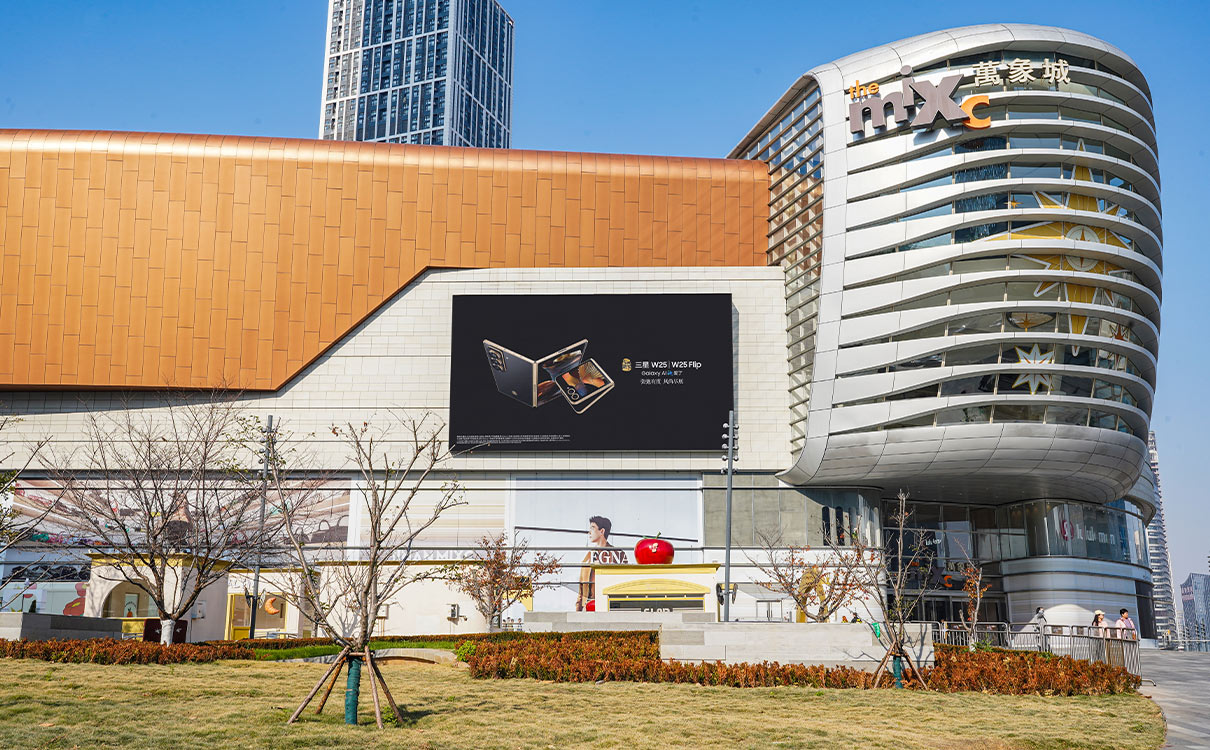 萬象城購(gòu)物(wù)中(zhōng)心戶外LED屏 上刊品牌:中(zhōng)國(guó)電(diàn)信&三星