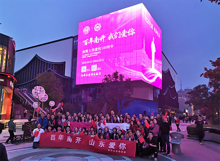 南開大學(xué)山(shān)東校友會投放“魔方”山(shān)東國(guó)際時尚創意中(zhōng)心戶外LED屏廣告