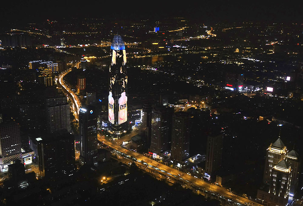 美汁源投放濟南地标媒體(tǐ)-濟南綠地中(zhōng)心第一高媒廣告)