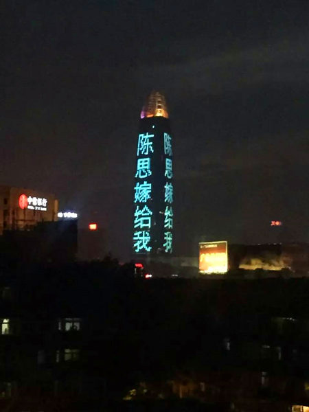 2016年5月20日晚20左右,位于濟南金街(jiē)“第一高樓”LED大屏上一條“陳思嫁給我”的真情表白火爆濟南泉城之夜。
